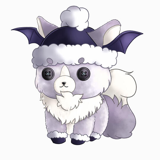 A full body chibi with a flat colored background.